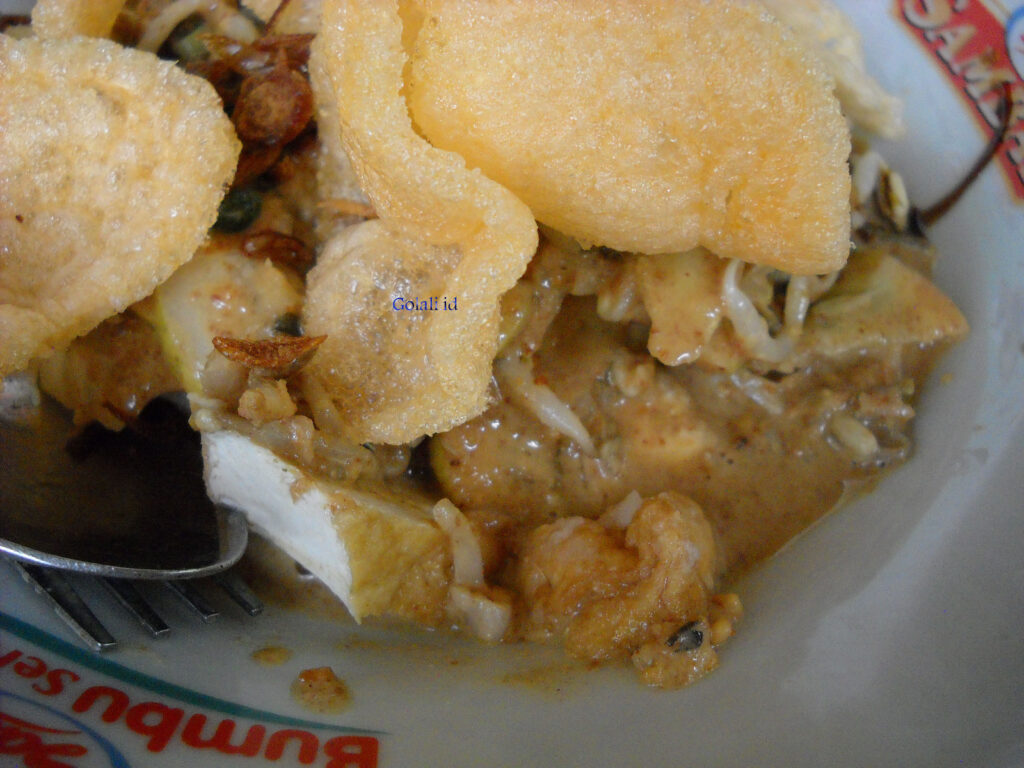 3.Gado-gado ditambah tahu goreng, tempe goreng, telur rebus, dan lontong. Sementara lotek hanya ditambah lontong.