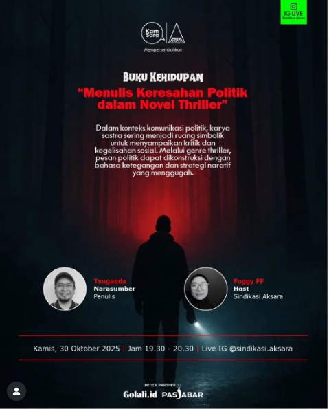 Acara yang digagas oleh Sindikasi Aksara ini akan disiarkan langsung pada Kamis, 30 Oktober 2025 pukul 19.30–20.30 WIB melalui Instagram @sindikasi.aksara. Diskusi akan dipandu oleh Foggy FF sebagai host, menghadirkan percakapan mendalam tentang bagaimana sastra dapat menjadi wadah komunikasi politik yang elegan namun menggugah.