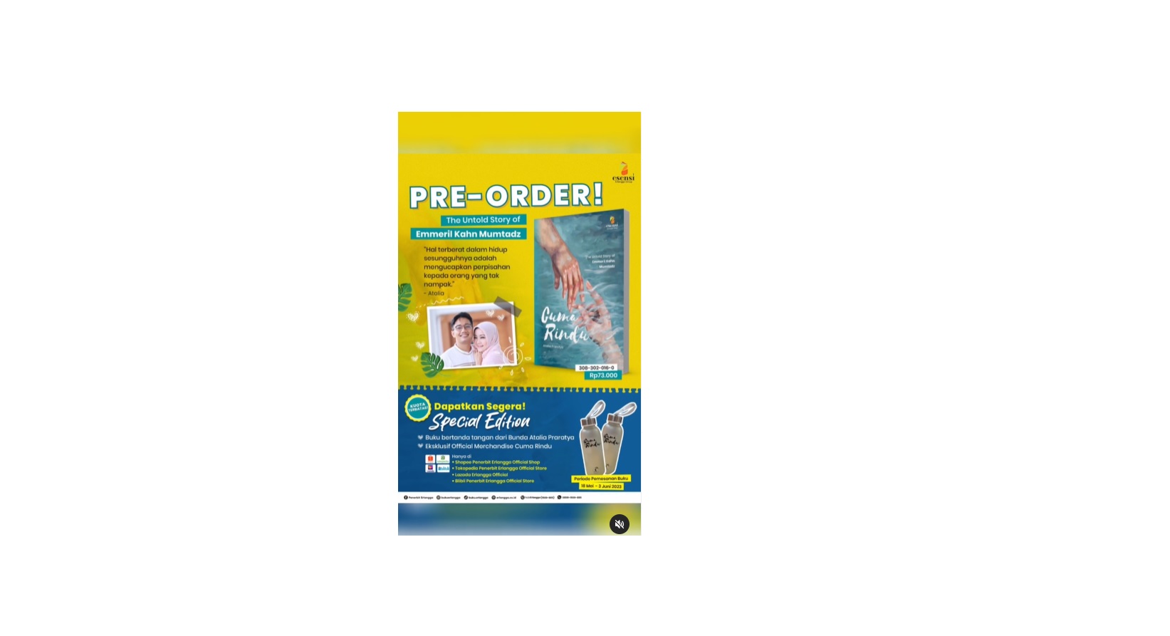 Buku Cuma Rindu ditulis Atalia Praratya Kamil, yang menjabarkan kisah nyata kehidupan seorang pemuda bernama Eril (Emmeril Kahn Mumtadz) putra sulung Ridwan Kamil dan Atalia Praratya yang hilang di Sungai…